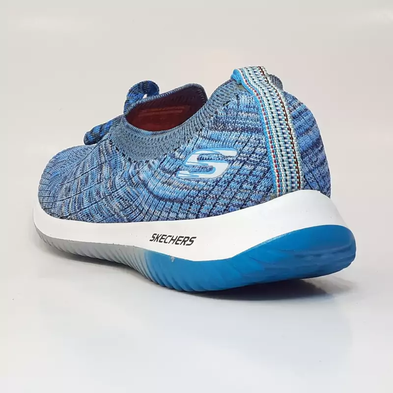 کفش راحتی زنانه اسکچرز دهنه کشی با بند نمایشی آبی برفکی