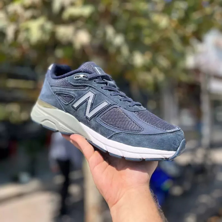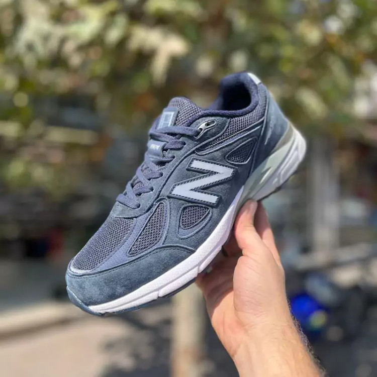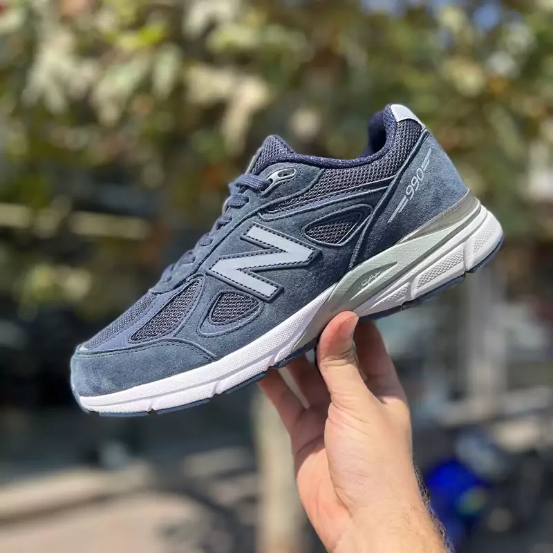 کفش روزمره مردانه نیوبالانس 990 سرمه ای ورژن 4 با رویه چرم کیفیت مستر