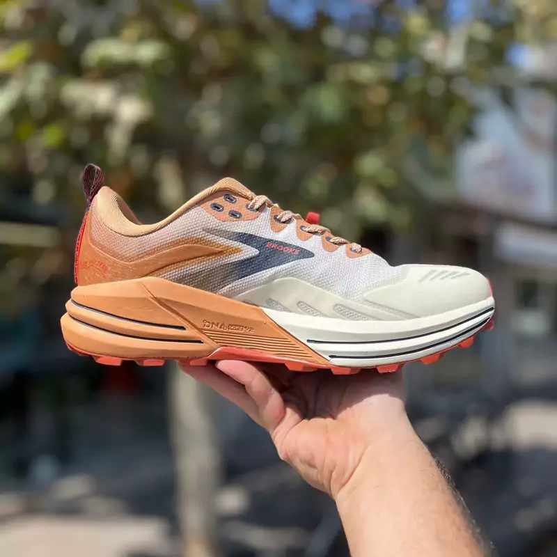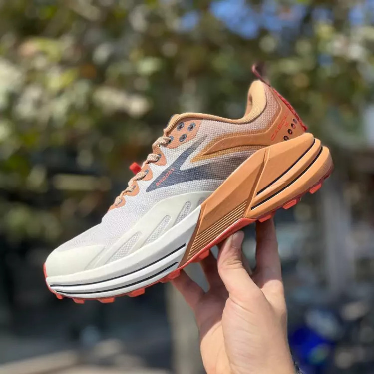 کتونی بروکس با زیره دو تیکه لاستیک و ایویا و رویه پارچه بسیار مقاوم کار عالی برای تریل رانینگ و روزمره